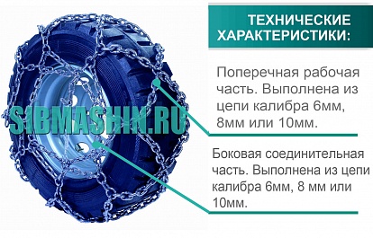 Цепи противоскольжения представляют собой сетку из круглозвенных цепей равномерно оплетающую шину по всей окружности. По сути это съемный протектор способный превратить обычную дорожную покрышку в колесо для бездорожья. Состоит из двух продольных цепей, проходящих по внутренней и наружной окружностям колеса соединенных поперечными цепями.